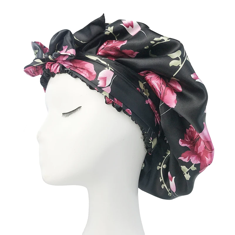 Elevate your nighttime routine with the Soft Silky Print Satin Bonnet. Designed for comfort and style, this large nightcap keeps your hair protected while you sleep, ensuring you wake up with beautiful, frizz-free locks.