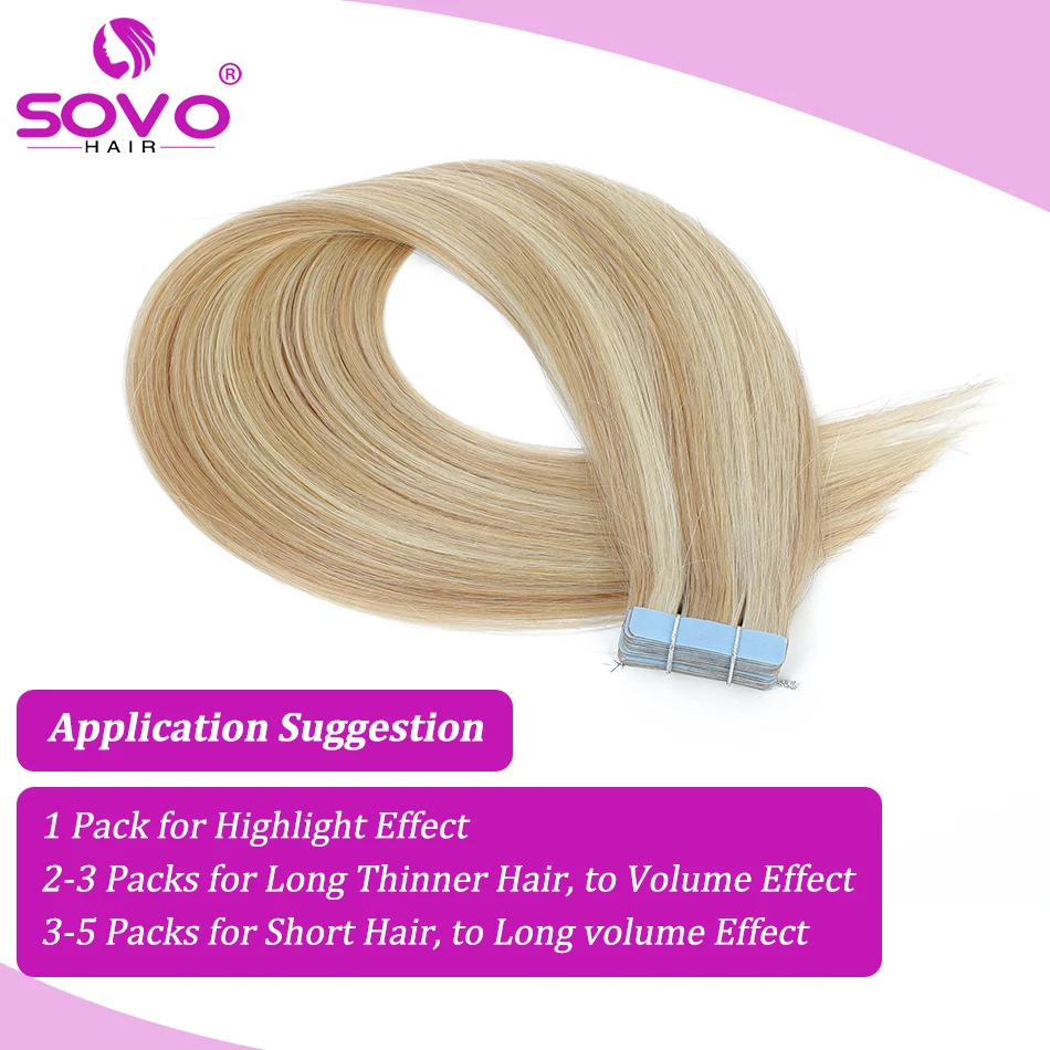 Made from high-quality Remy hair, these extensions can be styled, colored, and treated just like your own hair. To maintain their beauty, wash gently and avoid excessive heat. Elevate your hair game with SOVO Tape in Extensions for a stunning and confidence-boosting transformation!