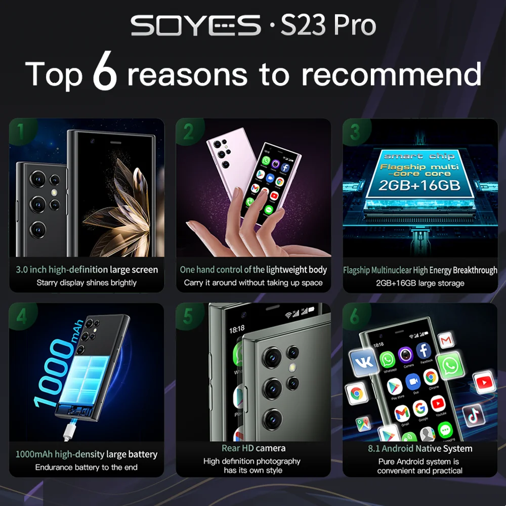 Introducing the SOYES S23 Pro Ultra-thin Smartphone, designed for those who value portability without compromising on functionality. This compact mobile phone is perfect for everyday use, combining sleek design with essential features.