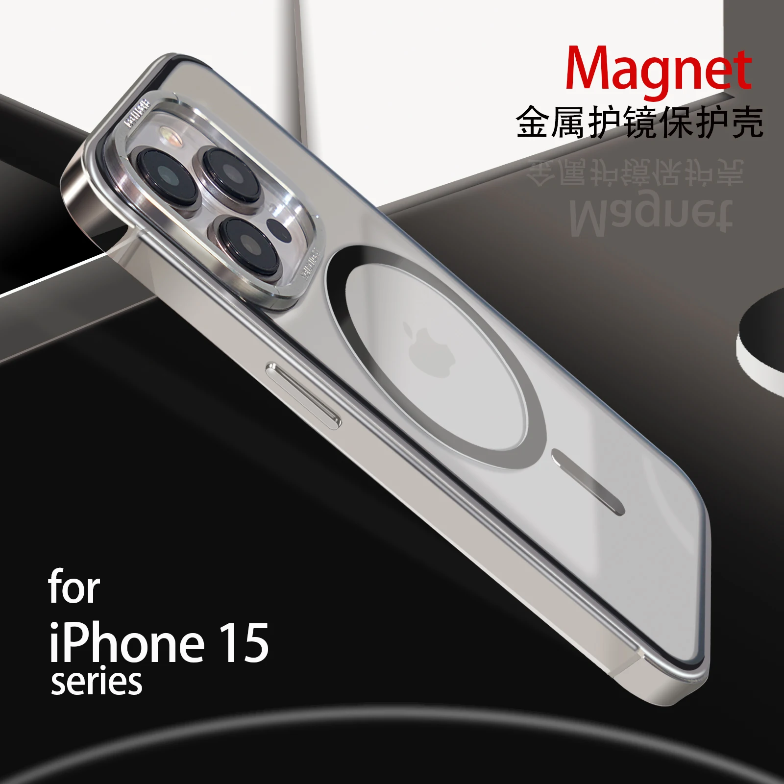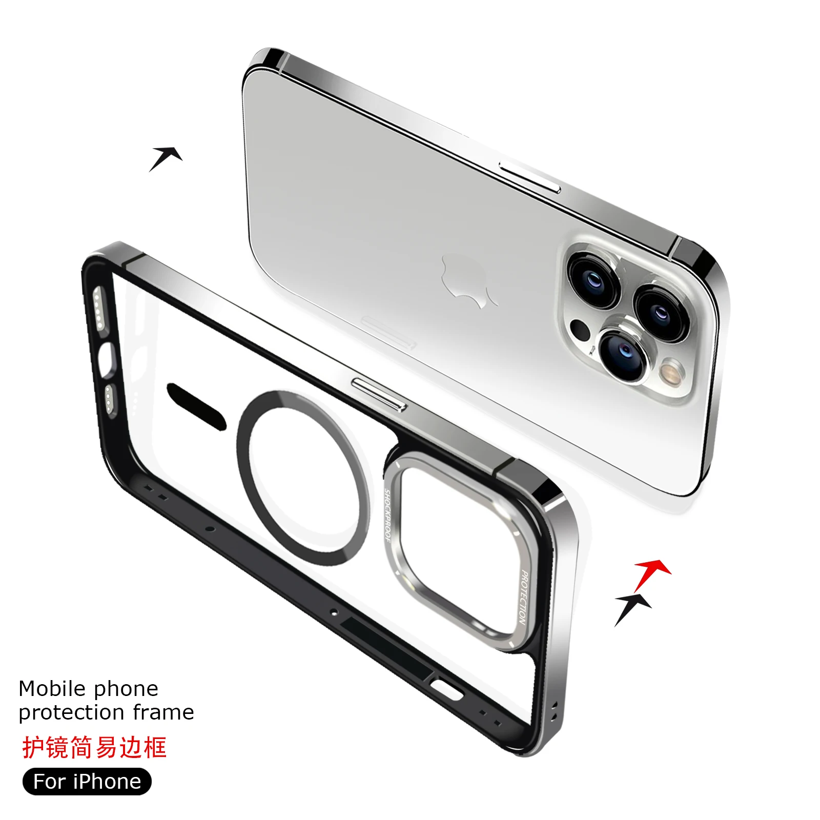 Elevate your iPhone 15 Pro Max with the Stainless Steel Frame Magnetic Phone Case. Combining sleek design with robust protection, this case is your ultimate accessory for style and functionality.