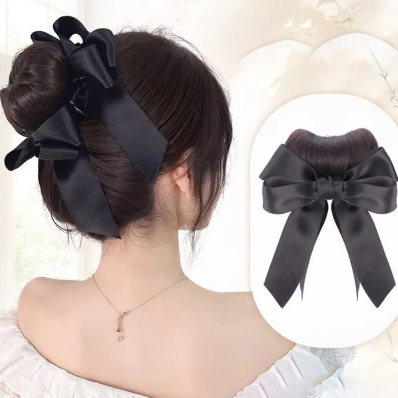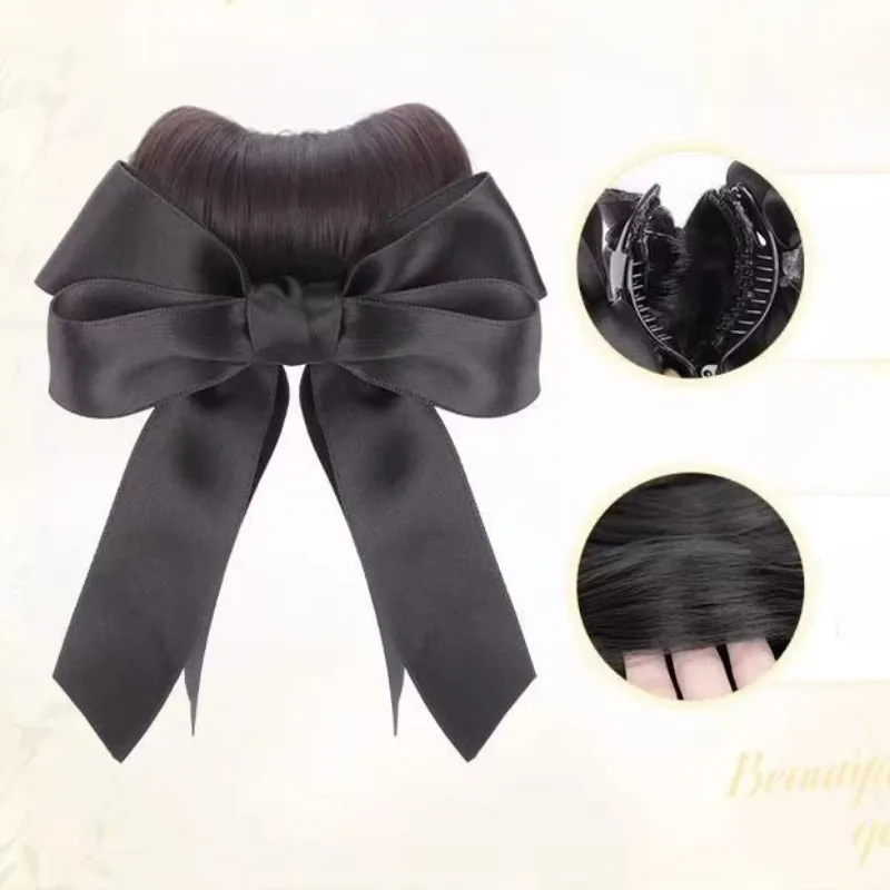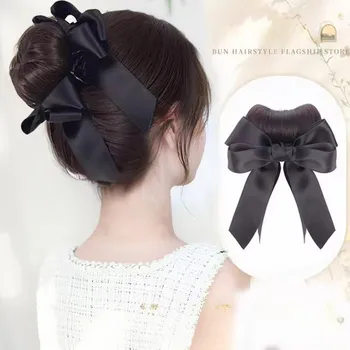 Elevate your hairstyle effortlessly with our Synthetic Chignon Natural Artificial Hair Bow High Tie Bun Clip. Perfect for any occasion, this chic headwear adds instant elegance to your look.