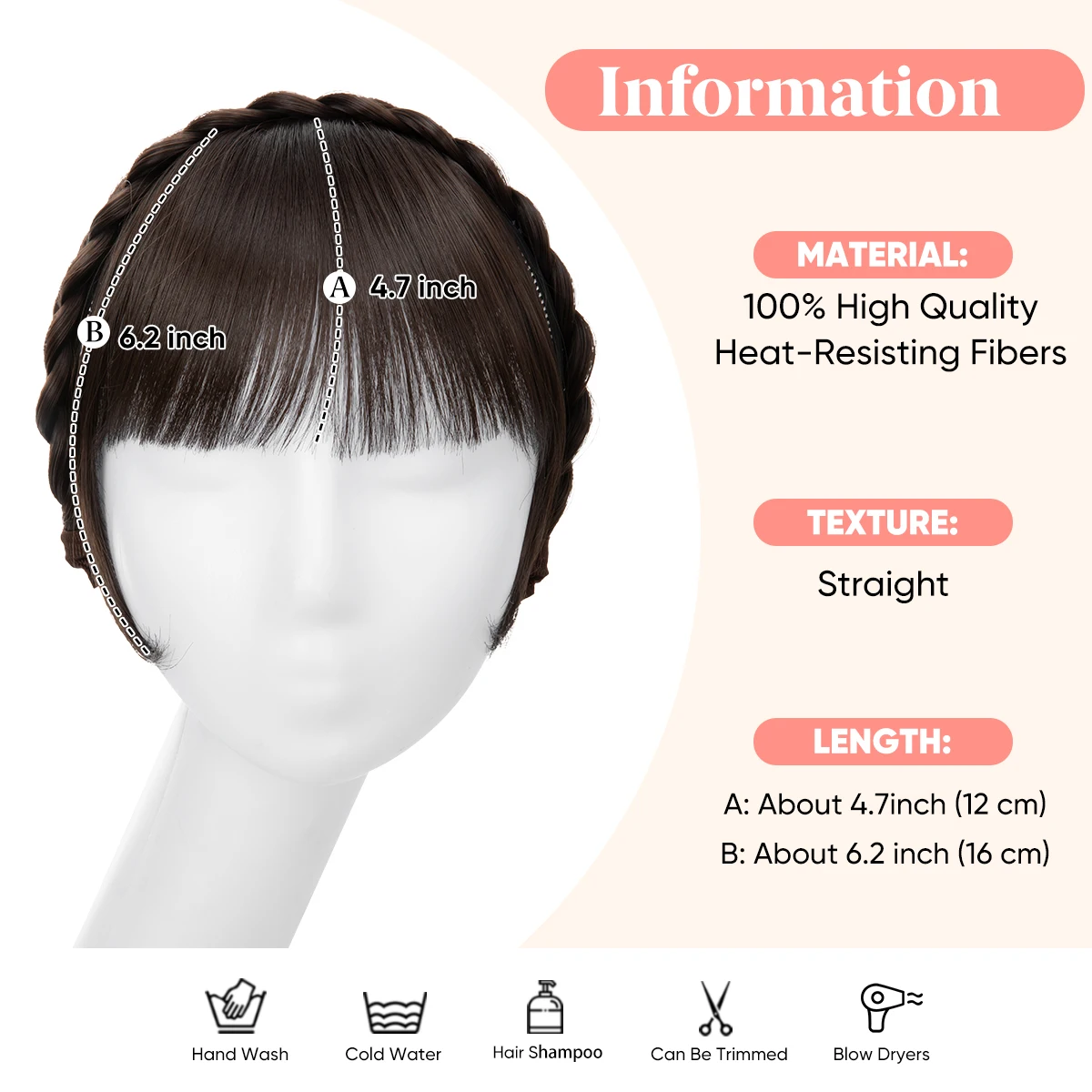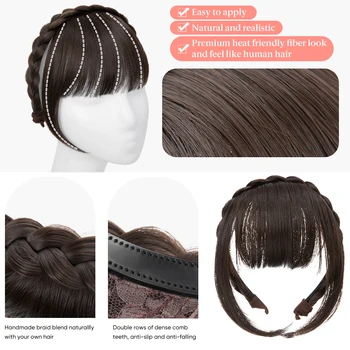Transform your look effortlessly with the Synthetic Headband Bangs Extension. Perfect for adding a stylish blunt fringe with long sides, this hairpiece enhances your natural beauty in a matter of seconds.