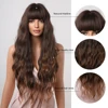 Transform your look effortlessly with our Synthetic Wigs Long Ombre Brown Curly Wave Wigs with Bangs. Perfect for daily wear or special occasions, this stunning wig combines style and comfort for a fabulous appearance.
