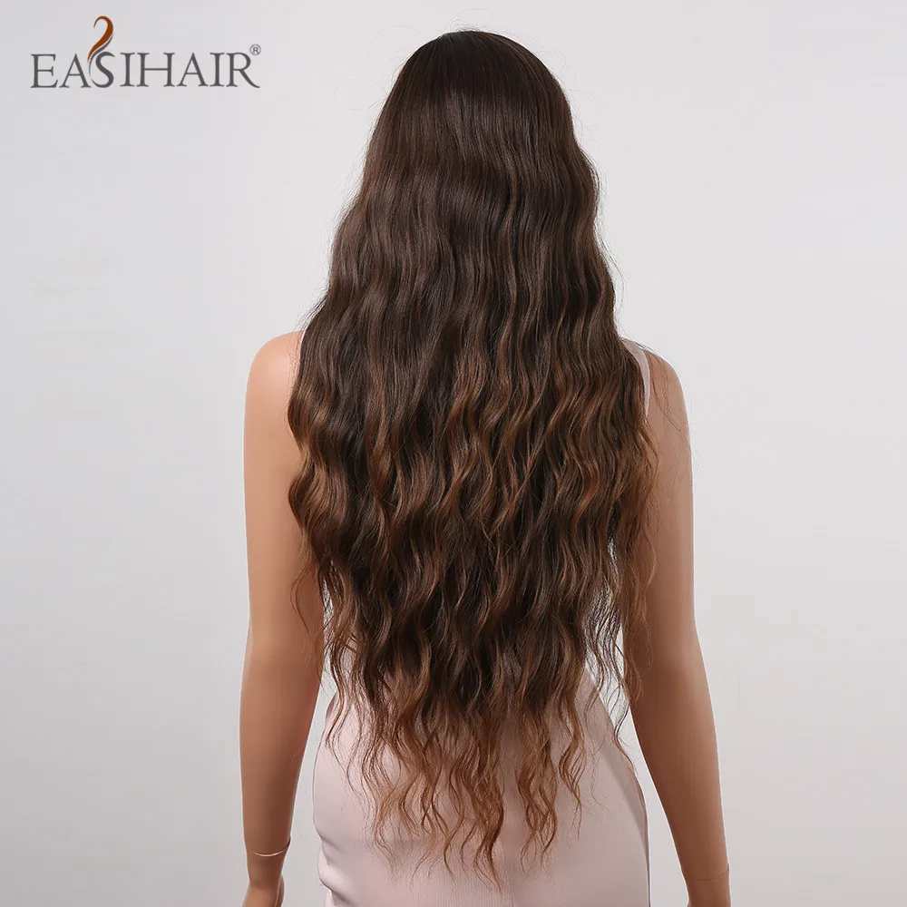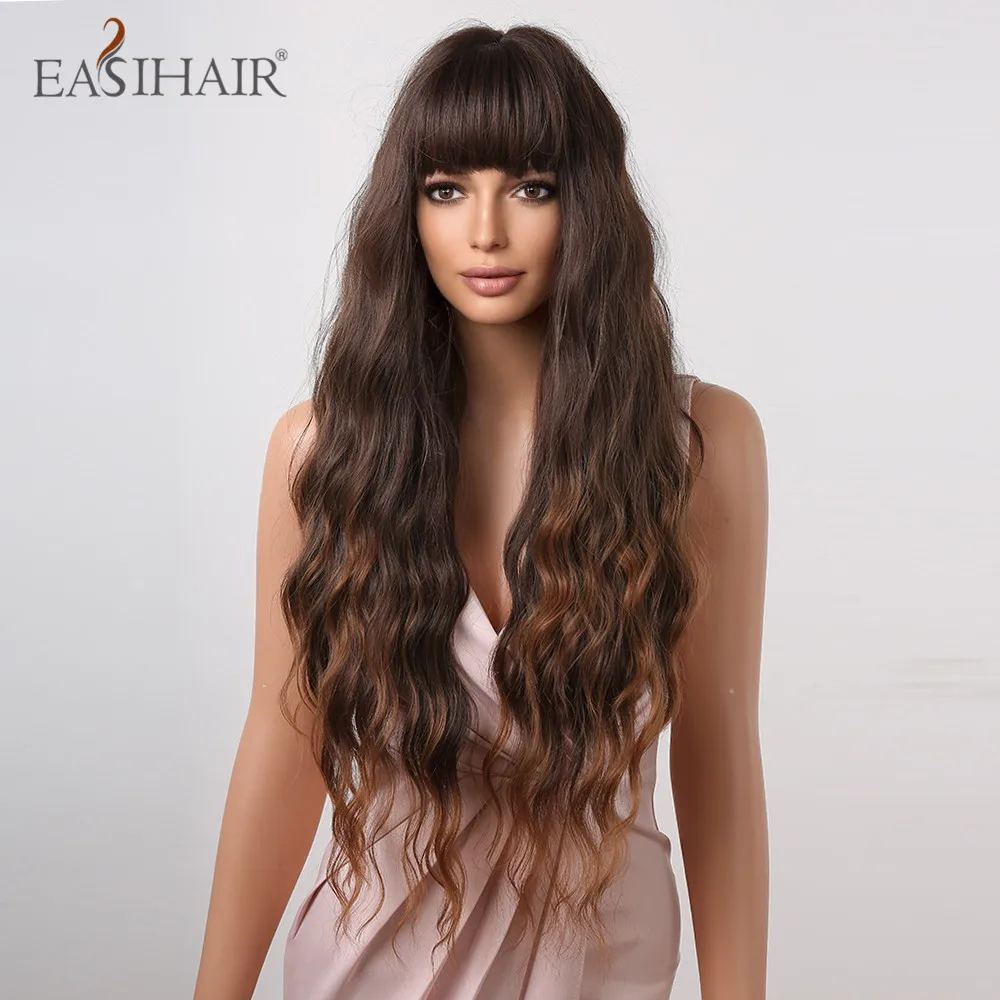 Transform your look effortlessly with our Synthetic Wigs Long Ombre Brown Curly Wave Wigs with Bangs. Perfect for daily wear or special occasions, this stunning wig combines style and comfort for a fabulous appearance.