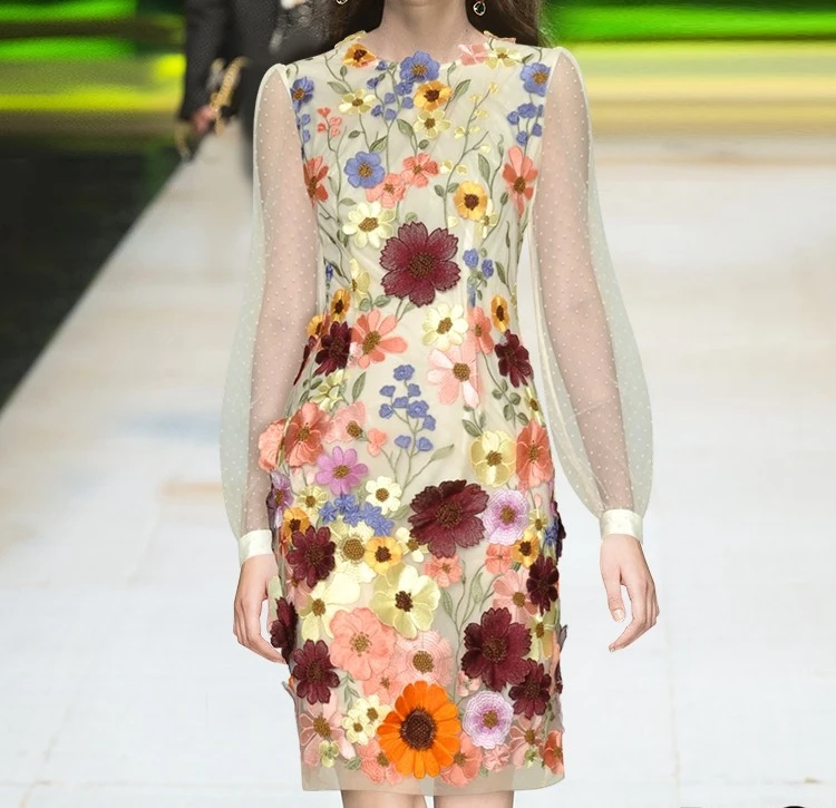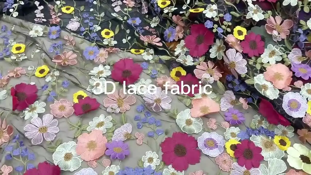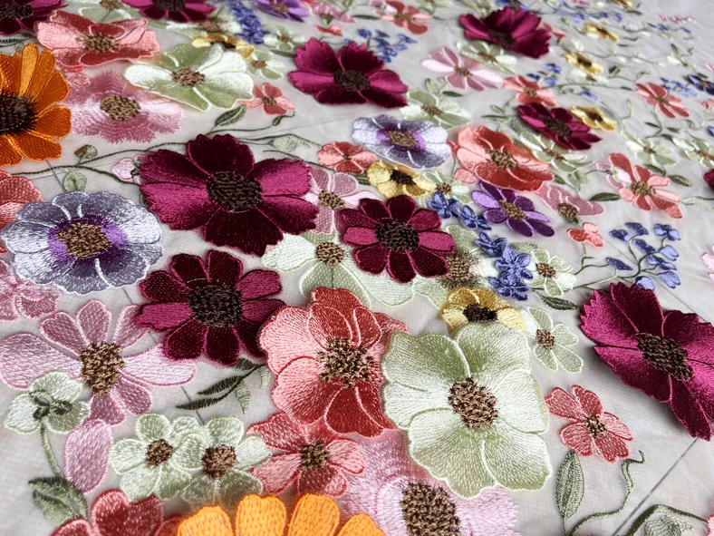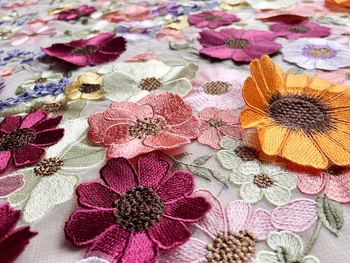 Elevate your fashion creations with our Three-Dimensional Sunflower Floating Soft Mesh Embroidery Lace Dress Fabric. Perfect for designing stunning garments, this exquisite lace fabric combines elegance and versatility.