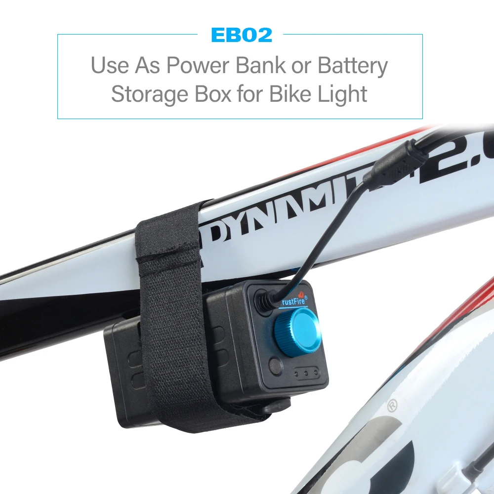 Crafted from high-quality materials, this battery storage box is built to last. Use it with ease for camping trips, biking, or any mobile charging needs. Stay connected and energized with Trust Fire EB02 – your reliable power companion.