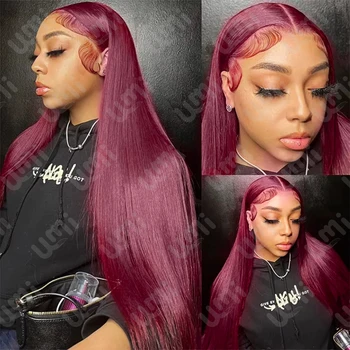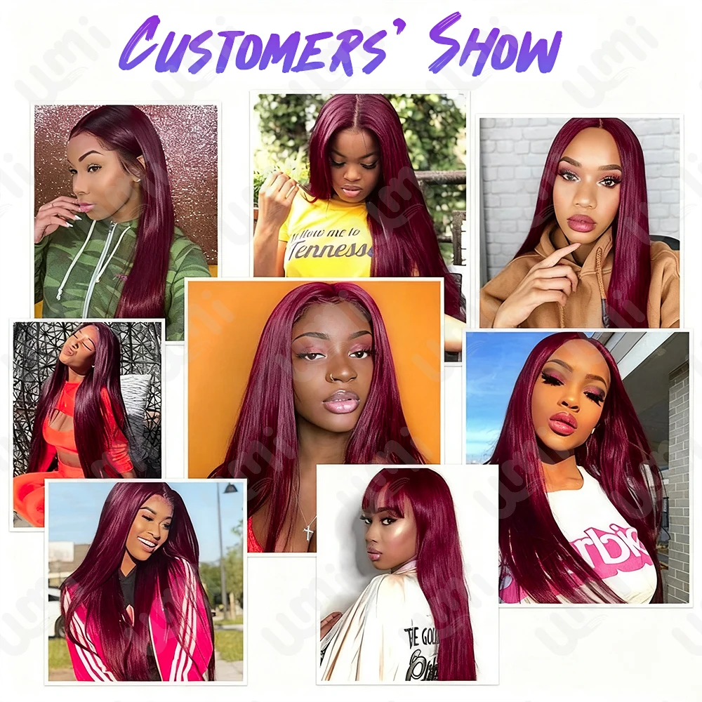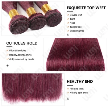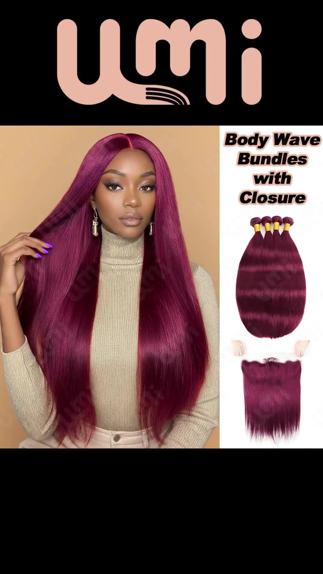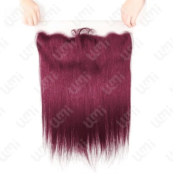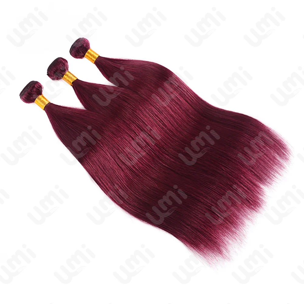 Transform your look with the Umi 99 J Burgundy Bone Straight Bundles with Frontal Human Hair Closure. Perfect for versatile styling, this luxurious hair extension set enhances your beauty effortlessly.