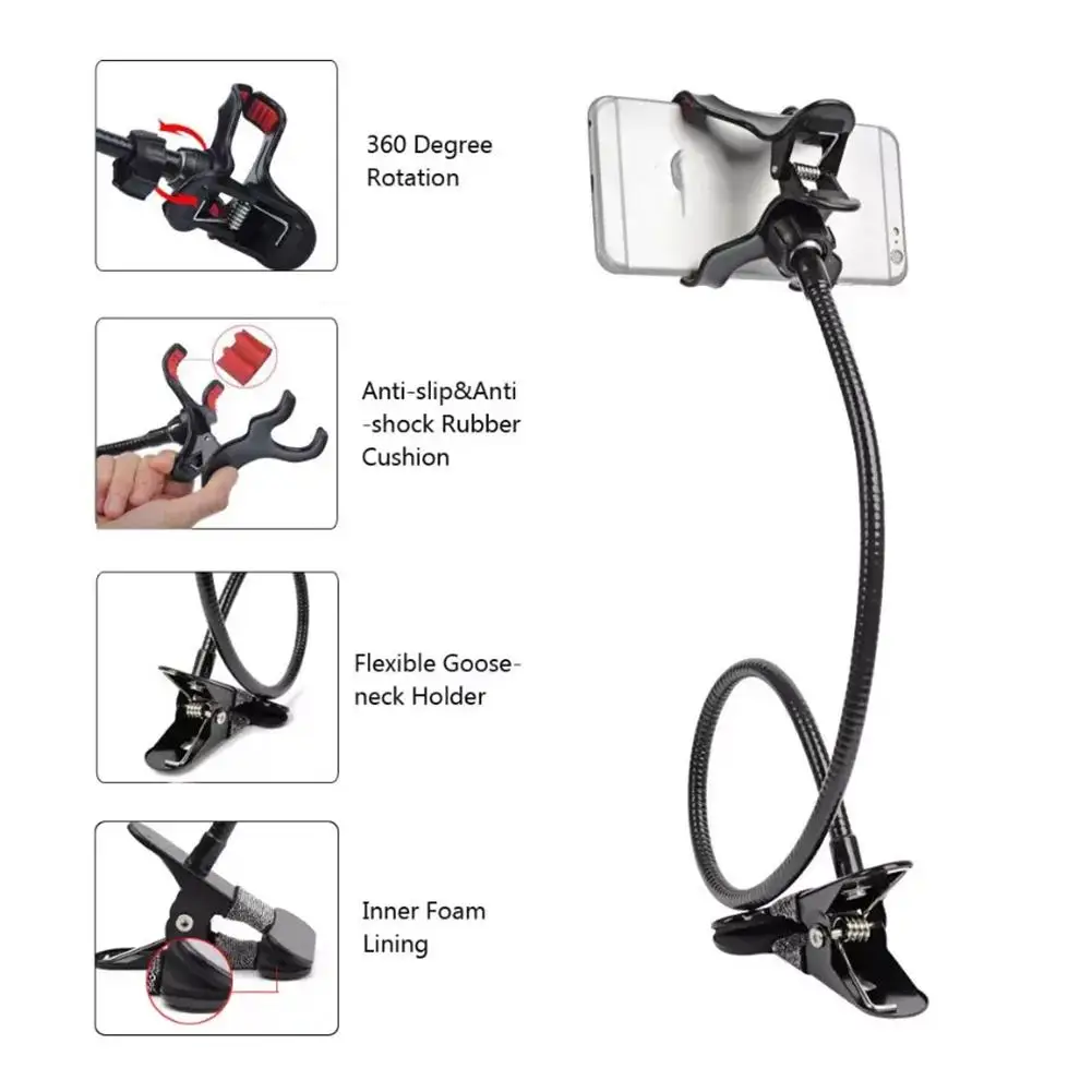 Experience the ultimate convenience with the Universal Lazy Bracket Mobile Phone Holder. Perfect for hands-free use, this gooseneck stand allows you to enjoy your favorite content effortlessly.