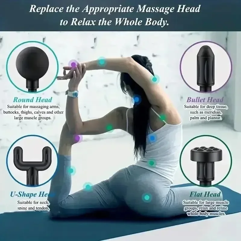 Say goodbye to muscle tension and enhance your fitness routine. Ideal for post-workout recovery or daily relief, this versatile massage gun is your perfect companion for relaxation. Made from durable ABS material, it features a rechargeable battery and comes in multiple colors. Elevate your wellness journey with this innovative massage tool.