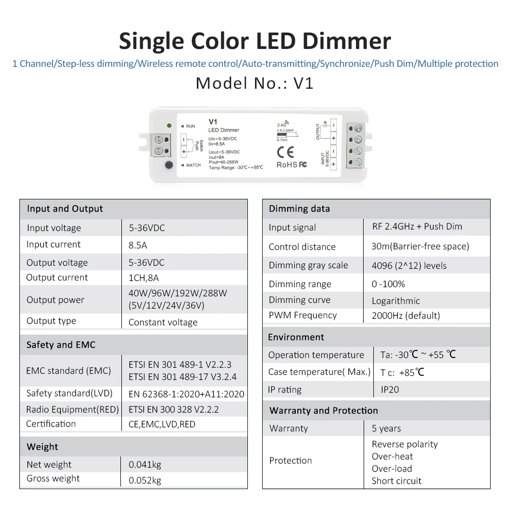 Crafted from high-quality materials, it’s built to last. Note: No battery included for shipping safety. Elevate your lighting experience with the V1 LED Dimmer Kit today!