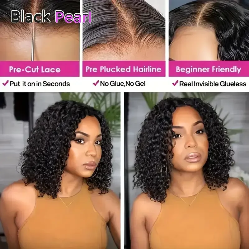 Elevate your style with the Water Wave Kinky Curly Bob Wig, crafted from 100% unprocessed Peruvian human hair. This glueless T-part wig offers a natural look and feel, perfect for any occasion.