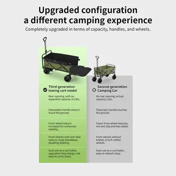 Perfect for camping, beach trips, and barbecues, it effortlessly carries your gear while offering additional seating and surface space. The telescopic handle and upgraded front wheels ensure stability on any terrain. Enjoy the outdoors with ease and style!