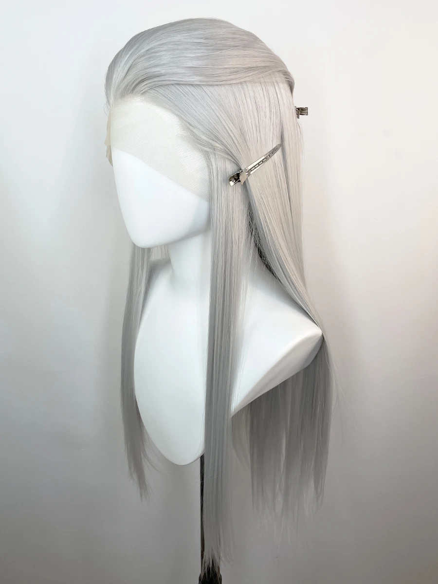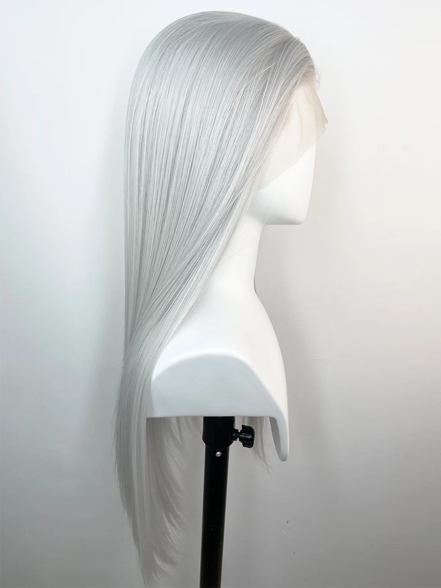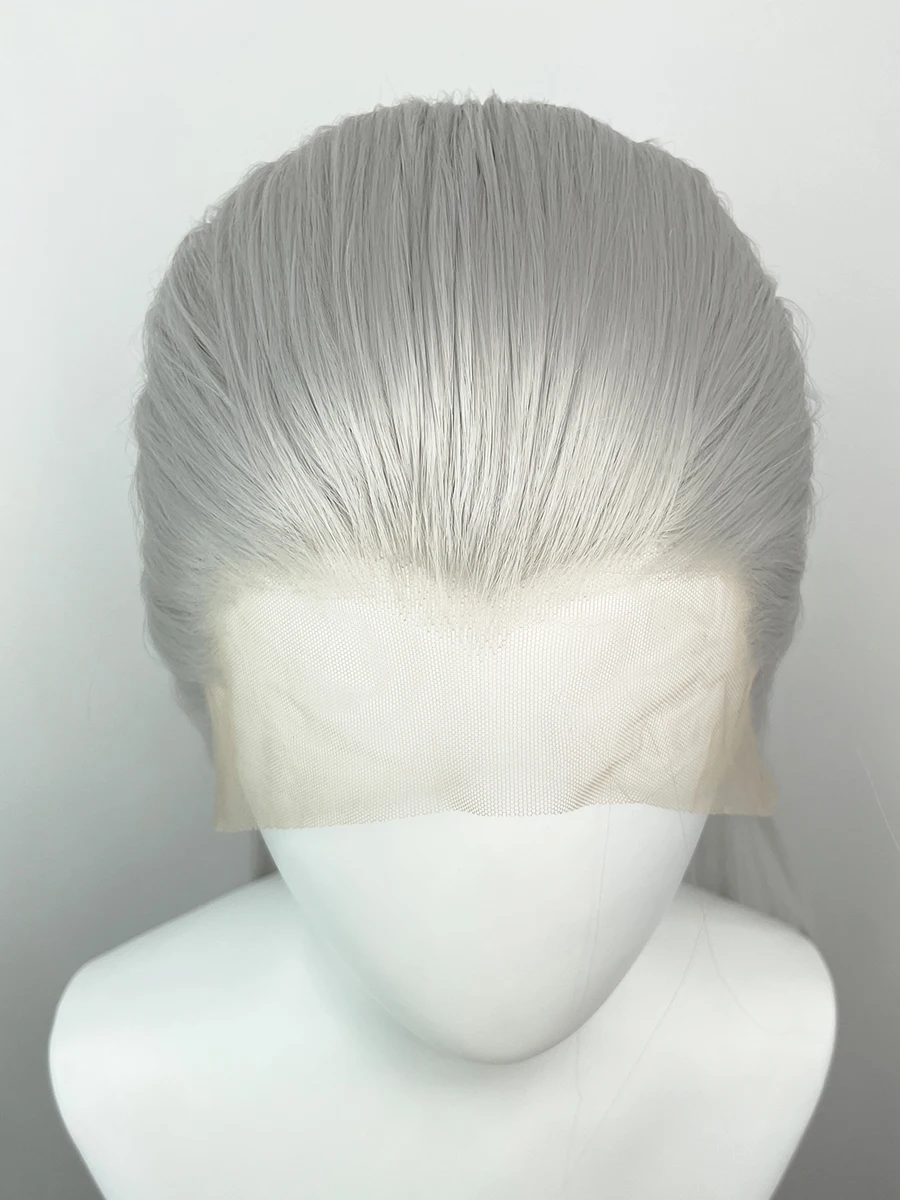 Elevate your style with the Widow's Peak Silver Grey 13 x 4 Synthetic Lace Front Wig. Perfect for cosplay or everyday wear, this stunning 26-inch straight wig transforms your look effortlessly.