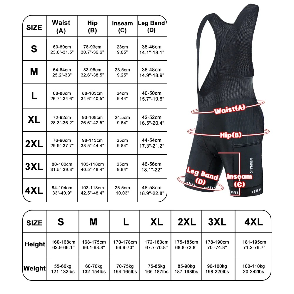 These bib shorts enhance your cycling experience by reducing chafing and providing excellent moisture management. Whether you're tackling trails or cruising on the road, the X-TIGER bib shorts are your perfect riding companion.